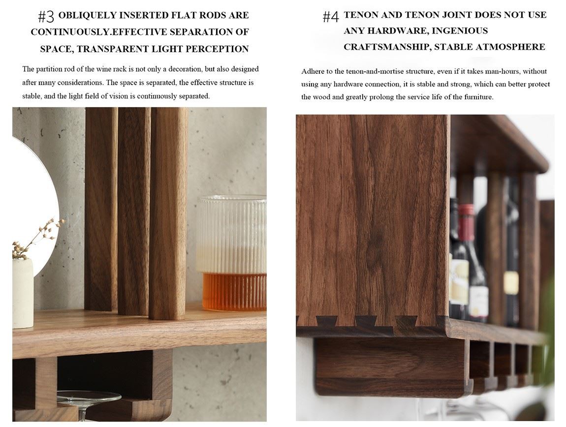 ยืนกรานที่จะใช้เดือยและโครงสร้างเดือย และไม่หวั่นไหวแม้ต้องใช้เวลาหลายชั่วโมง ชั้นวางไวน์ Liulan ไม่ได้ใช้การเชื่อมต่อฮาร์ดแวร์ใดๆ มันแน่นและแข็งแรง ซึ่งสามารถปกป้องไม้ได้ดีกว่าและยืดอายุการใช้งานของเฟอร์นิเจอร์ได้อย่างมาก