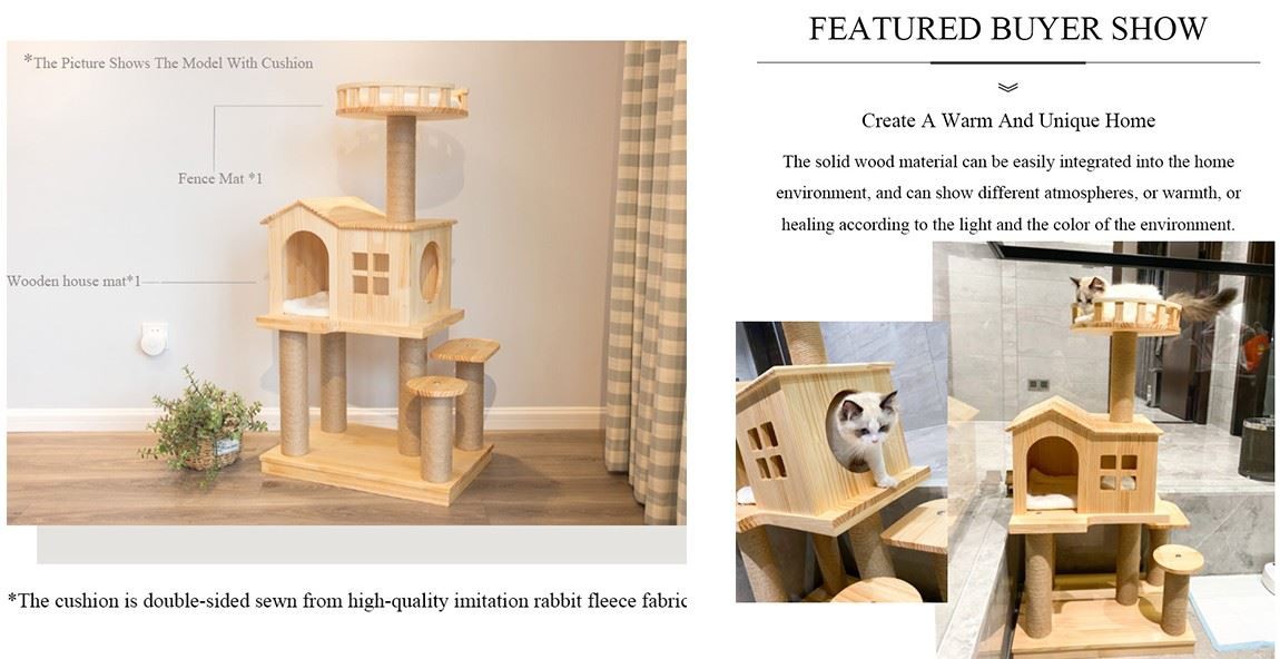 1. ดีไซน์มาจากองค์ประกอบที่แมวชื่นชอบ ด้วยวัสดุที่ดีที่คัดสรร พื้นผิวที่เป็นธรรมชาติ และความงามตามธรรมชาติเพื่อปลดปล่อยธรรมชาติของแมว มันไม่ได้เป็นเพียงโครงปีนแมวเท่านั้น แต่ยังเป็นบ้านของแมว สนามเด็กเล่น และความไร้เดียงสาของมันด้วย จากสรุปความชอบของแมวหลายๆ ตัว องค์ประกอบที่สร้างสรรค์เพิ่มความสนุกสนานมากขึ้น