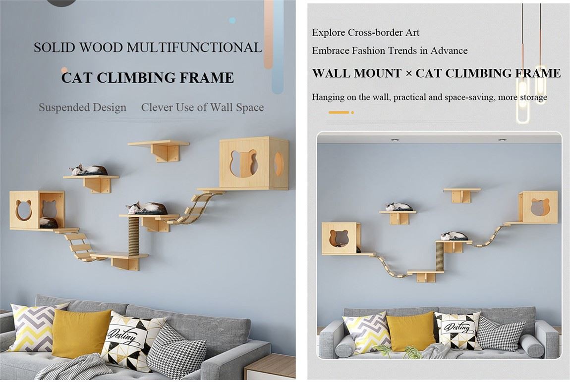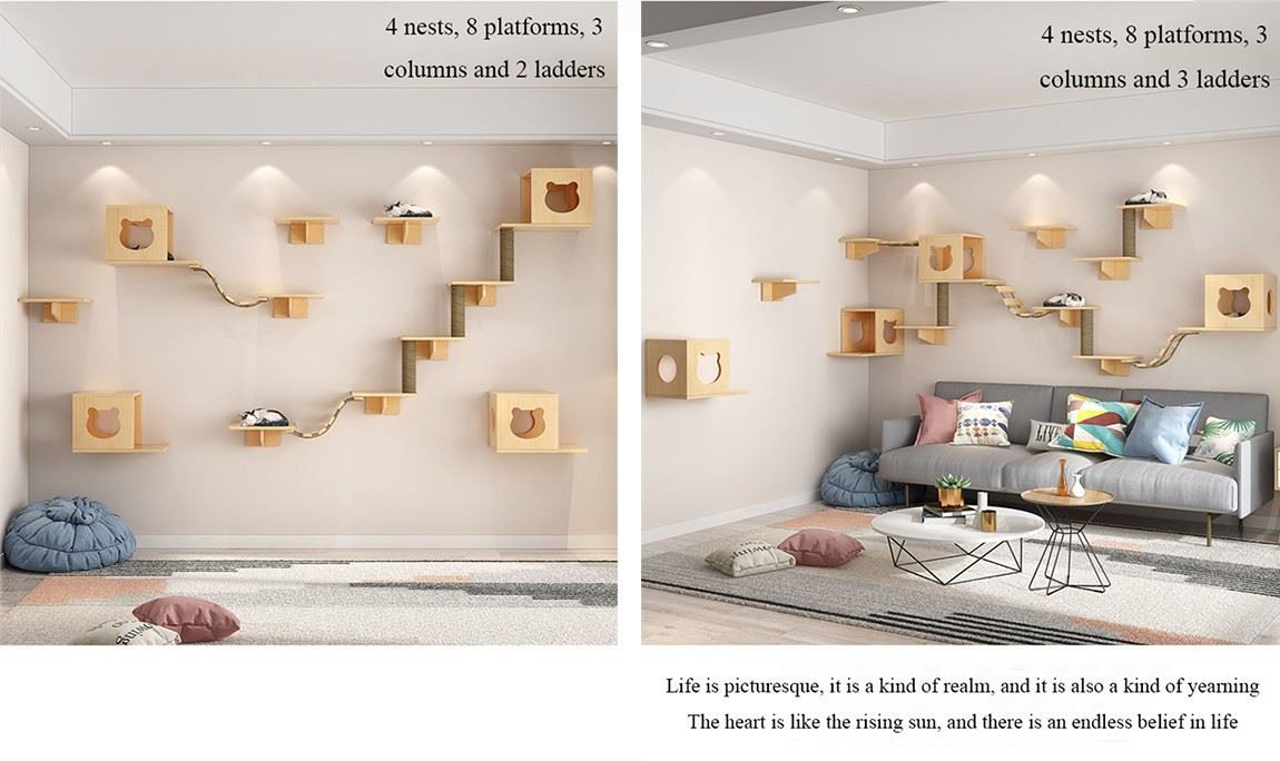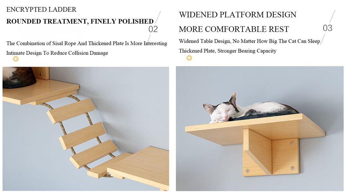 ผนังแมวไม้ทึบหรูหรา-ติดแมวปีนกำแพงกรอบปีนกำแพง-ประเภทกระดานกระโดดน้ำ กระดานกระโดดน้ำ ปีนบันได กำแพงไม้ เฟอร์นิเจอร์แมว 1 ครอก 2 ชุด 1 บันได 1 คอลัมน์