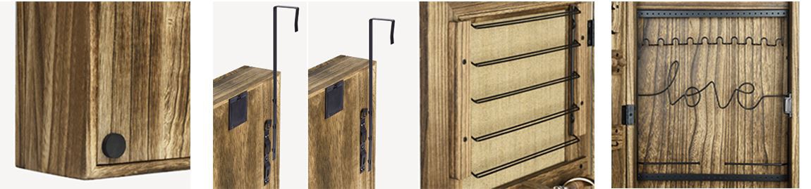2) ชื่อเรื่อง:ที่แขวนเครื่องประดับไม้ที่เป็นของแข็งพร้อมตัวติดผนังกระจกและที่แขวนประตู