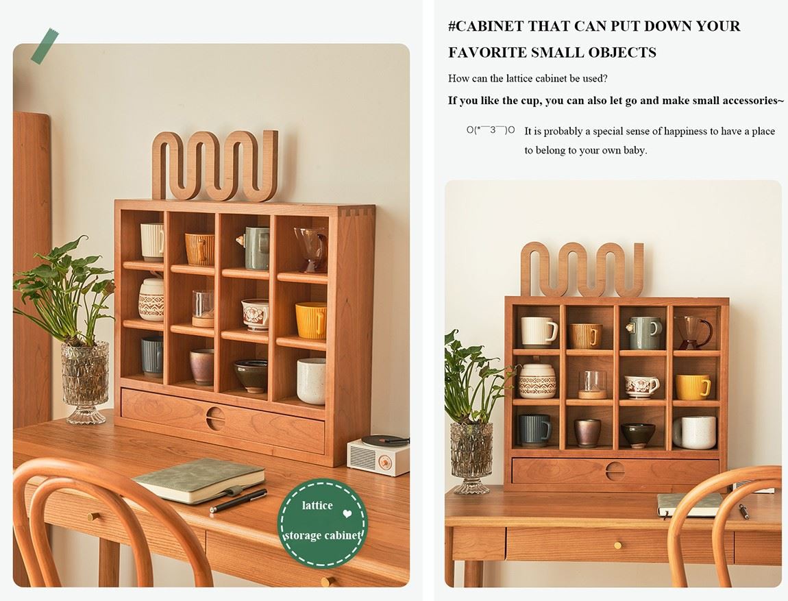 Nordic ไม้ถ้วยชากล่องเก็บถ้วยชั้นวางเดสก์ท็อป Lattice Multi-Layer ชั้นเก็บสมบัติแขวน Cabinet