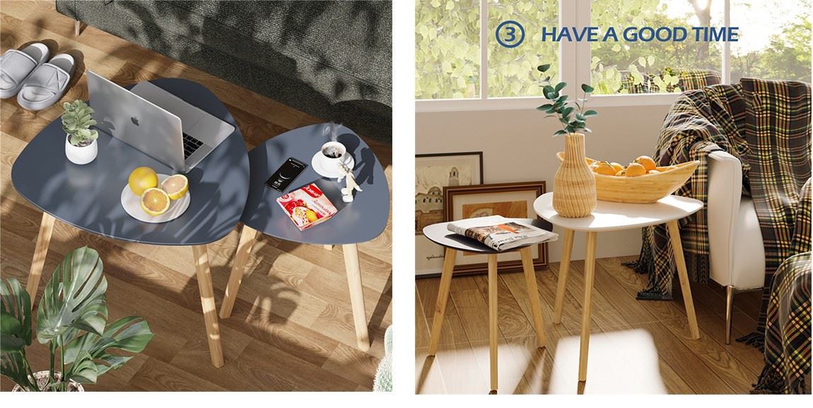 2) ชื่อเรื่อง:โต๊ะวางท้ายสามเหลี่ยมซ้อน, ชุดโต๊ะกาแฟ 2 ตัวโต๊ะข้างเรียบง่ายทันสมัย