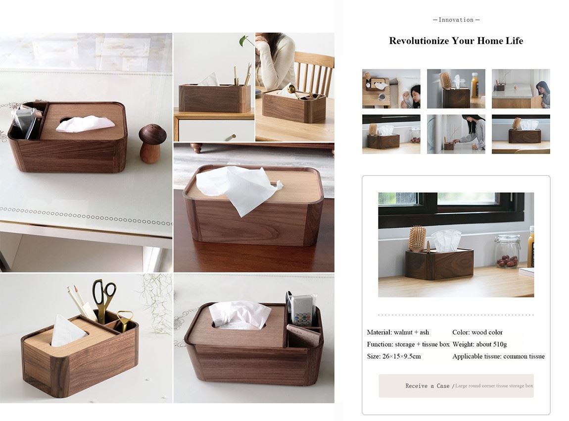 ไม้เนื้อแข็งอเนกประสงค์กล่องกระดาษทิชชู่รีโมทคอนโทรลกล่องเก็บแสงหรูหราวาดกล่องกระดาษห้องนั่งเล่นโต๊ะกาแฟโต๊ะกระดาษเดสก์ทอปกล่องวาดเครื่องประดับ