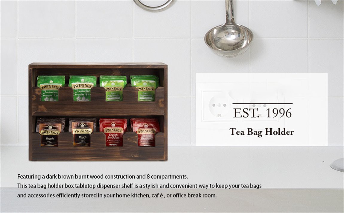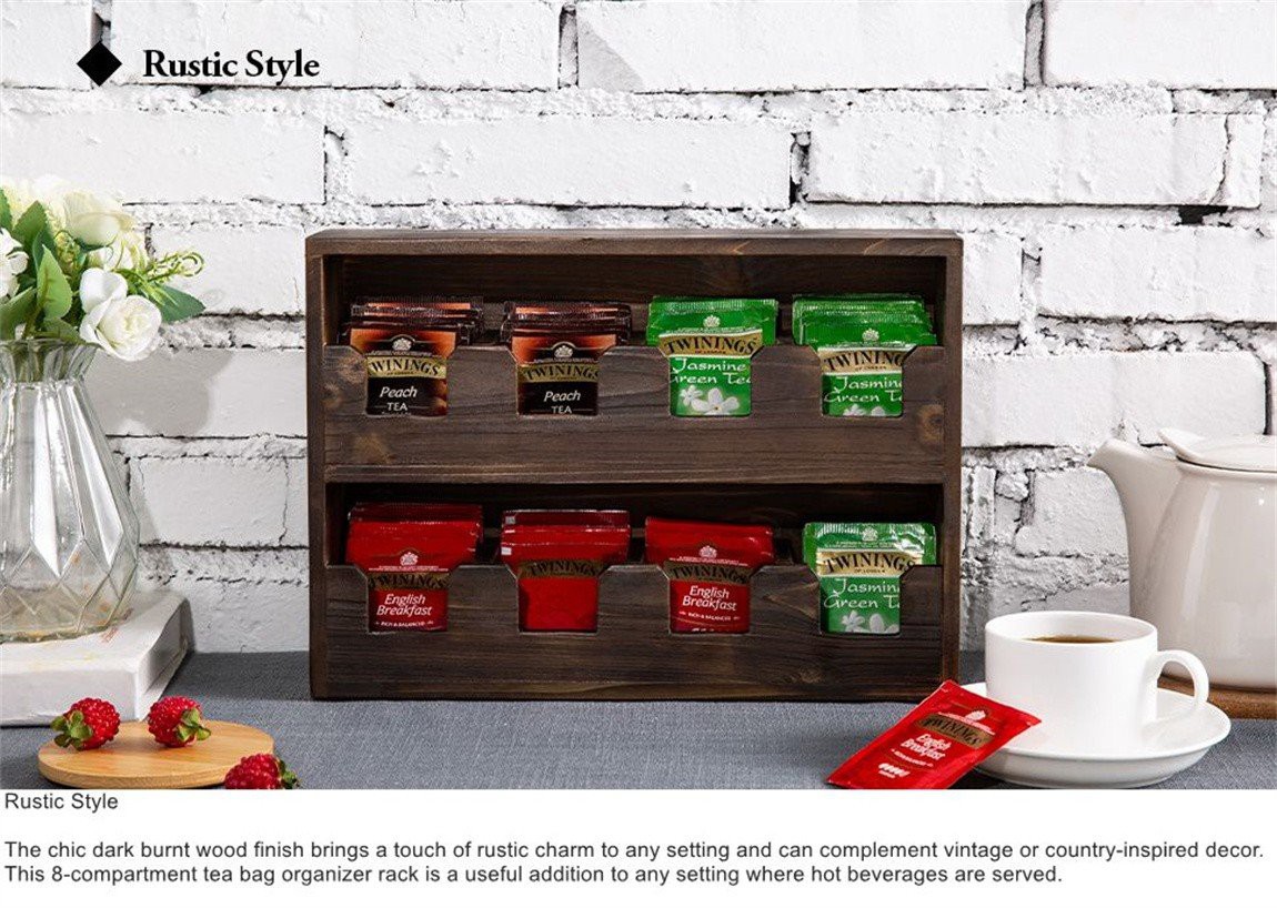 1. ทำจากวัสดุไม้เนื้อแข็งสีน้ำตาลเข้ม แบ่งออกเป็น 8 ช่อง ด้วยรูปลักษณ์ทันสมัยและฟังก์ชันทรงพลัง สะดวกในการเก็บถุงชารสชาติต่าง ๆ ในห้องครัวที่บ้าน ร้านกาแฟ หรือเลานจ์สำนักงาน